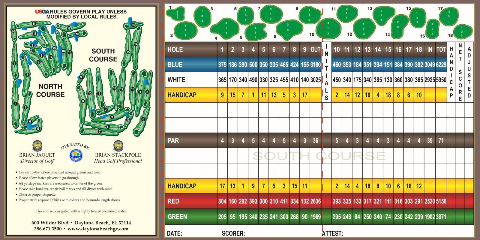 Daytona Beach Golf Club – official site (“Course Details”): identifies South as Ross’s original 18; provides public-access status, practice amenities, and scorecard link; supplies the city’s own history for the North Course (Deathridge 1946; rebuild 1997).