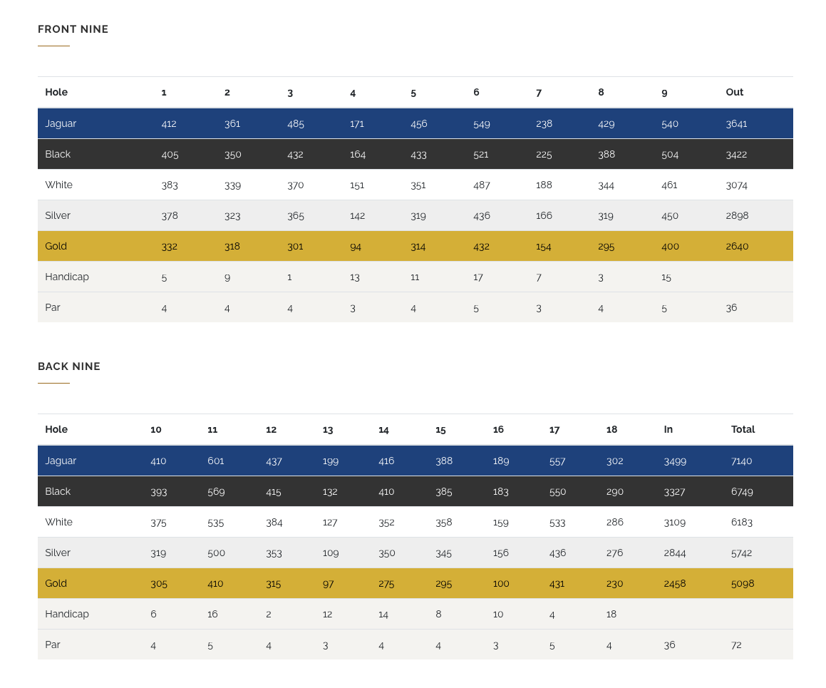 Club site, “Hole-By-Hole Tour” (yardages by hole; notes 2003 redesign by Arnold Palmer).