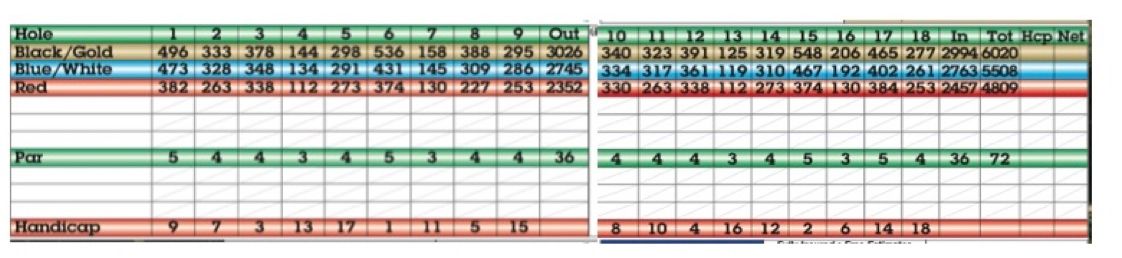 • Altered/adapted: par assignment on two holes to vary the back nine; turfgrass modernized to bent/Bermuda; likely incremental tree management and irrigation typical of the region.