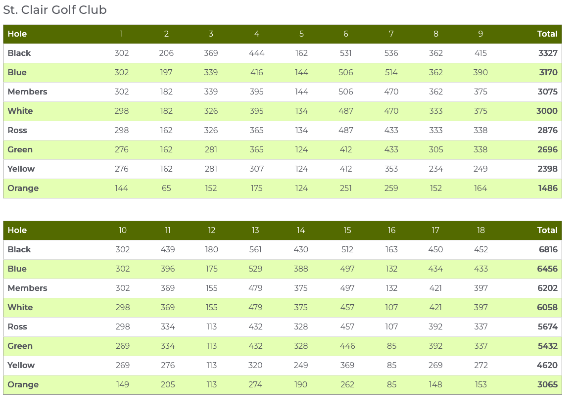 Routing-wise, St. Clair’s parkland corridors reflect early-20th-century siting along gentle relief near the river, with some constriction where trees have matured. The club notes eight tee sets (3,065–6,816 yards), a modern flexibility layered onto the historic framework and consistent with a course that hosts association events and qualifiers.